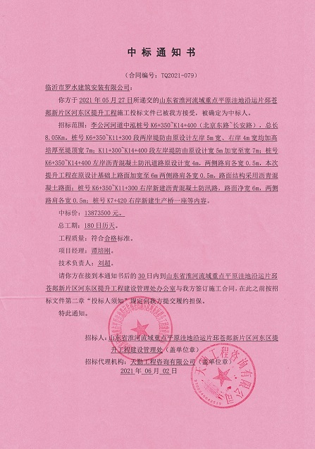 本工程主要內(nèi)容為:李公河河道中泓樁號(hào)K6+350至K14+400(北京東路~長(zhǎng)安路),兩岸培堤、新建生產(chǎn)橋1座、道路總長(zhǎng)8.05KM;